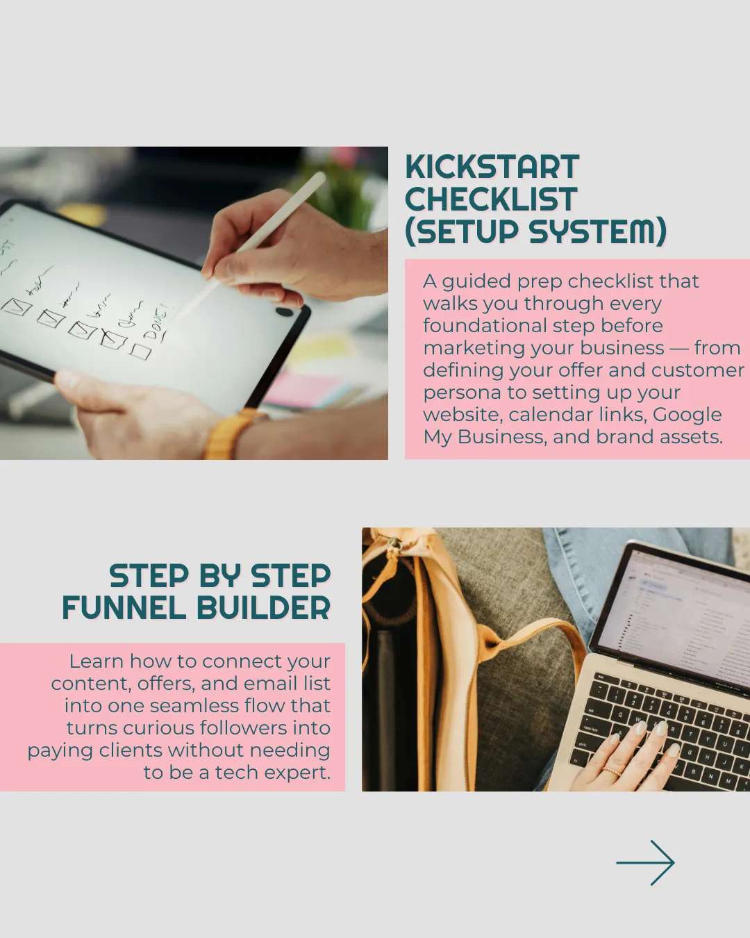 And an hour-long strategy call to clarify your brand & tech stack (website, email, socials, lead magnet, canva, and the guide itself)